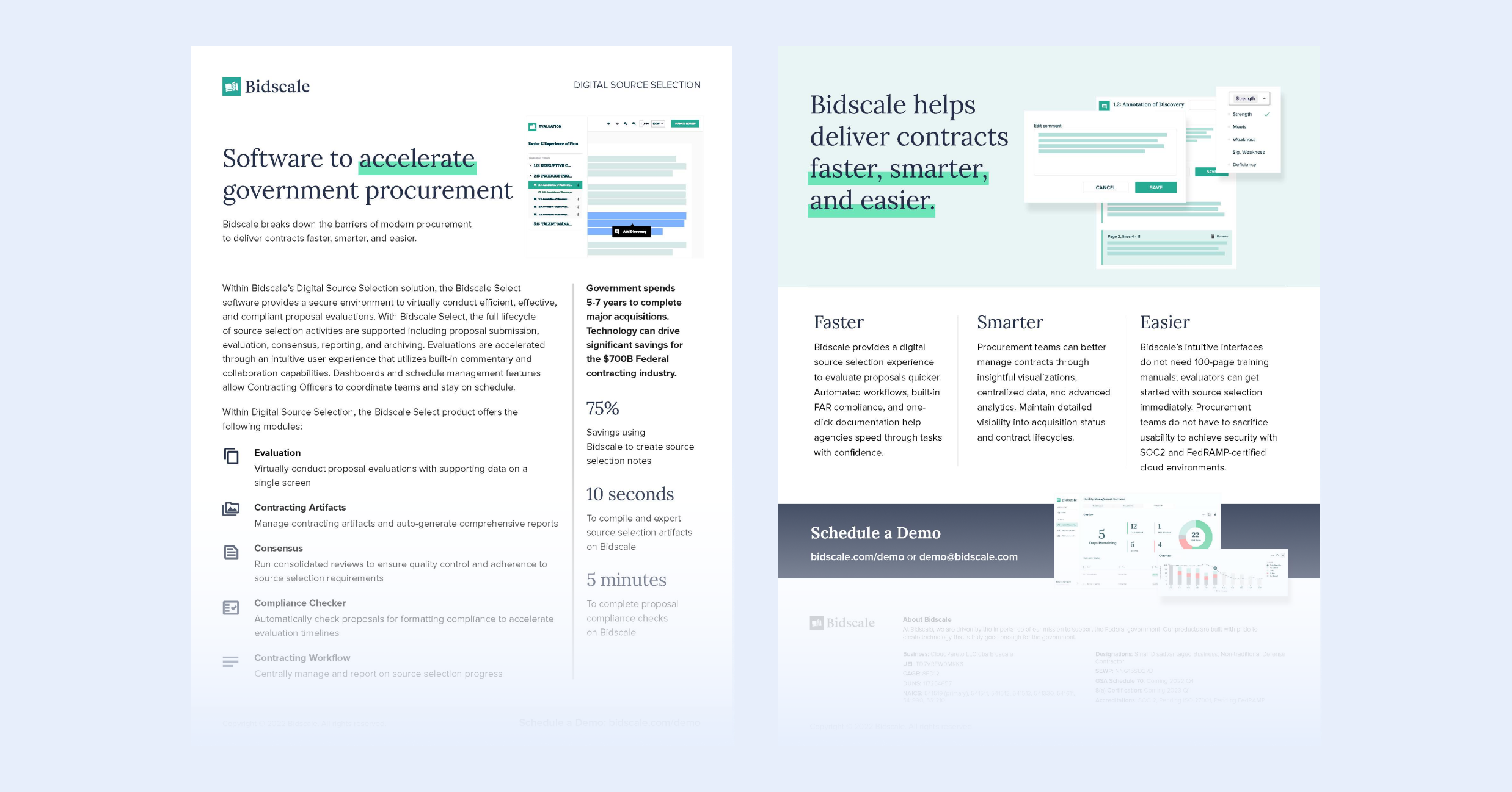 Bidscale, a SaaS startup in the Federal procurement space, hired me to design marketing collateral and support our government client, a program executive office. My work included developing and maintaining brand guidelines, designing white papers, pitch decks, print and digital ads, presentations, slick sheets, and proposals.